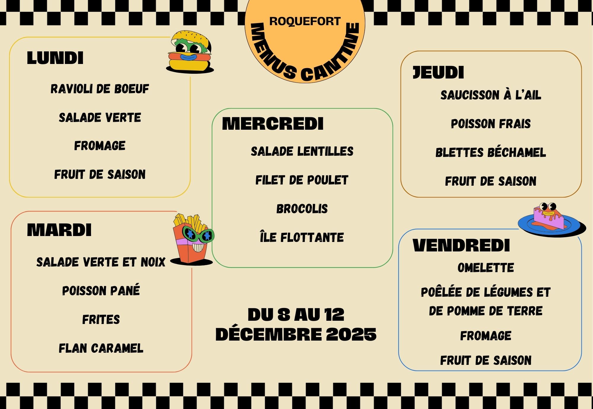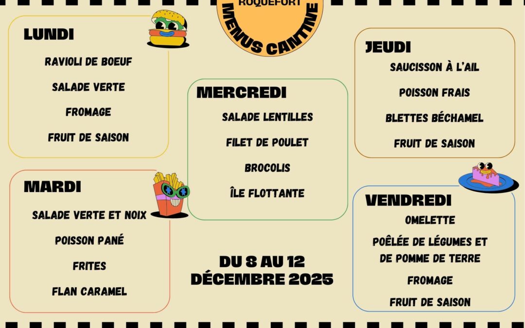 MENU DE LA CANTINE DU 08 AU 12 DECEMBRE 2025<br />
